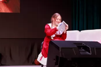 Далее интеллектуальный конкурс – все участники вышли на сцену с табличками в руках, на которых с одной стороны написано «правда», с другой – «ложь». Студентам задавали вопросы о семье, например: «Правда ли, что 8 июля не проходят венчания?», «Правда ли, что семья является многодетной, если в ней два ребёнка?».