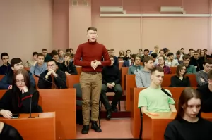 Затем глава города перешёл к главной теме мероприятия – предстоящим выборам Президента РФ, которые пройдут в нашей стране 15-17 марта 2024 года. Александр Викторович отметил важность участия в голосовании, пригласил студентов проявить свою гражданскую позицию и принять активное участие в выборах. Это важно для сохранения стабильности в России и развития нашего общества.