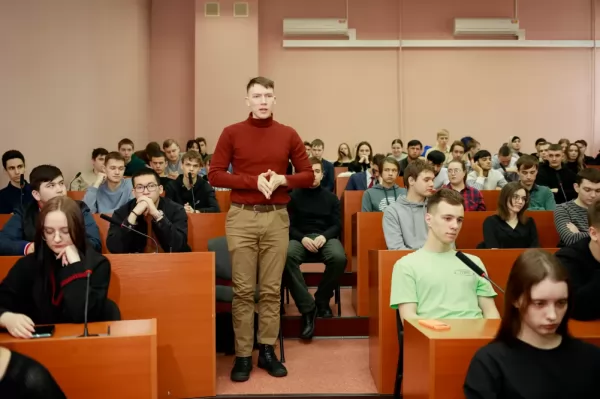 В начале встречи Александр Викторович рассказал студентам о своём профессиональном пути, о том, что является выпускником нашего университета, следит за развитием и гордится успехами студентов и преподавателей вуза; поделился планами развития города на ближайшие годы, рассказал об утверждённом мастер-плане города; отметил значимость послания Президента России Владимира Владимировича Путина Совету Федерации, в котором глава государства обозначил стратегический план развития страны на ближайшие шесть лет.