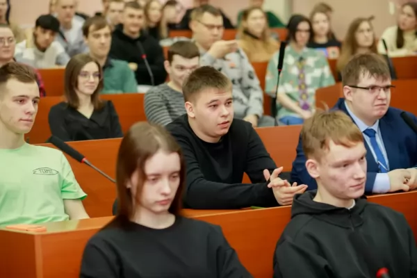 В рамках проекта «Разговоры о важном» 5 марта 2024 года в КнАГУ прошла встреча студенческой молодёжи университета с главой Комсомольска-на-Амуре Александром Викторовичем Жорником. На встрече присутствовали ректор КнАГУ Эдуард Анатольевич Дмитриев, представители администрации города, также приняли участие органы студенческого самоуправления во главе с председателем Объединённого совета обучающихся КнАГУ Сергеем Попковым.