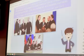 Модератором встречи выступила зав. кафедрой «История и культурология» доктор исторических наук профессор Жанна Валерьяновна Петрунина. Она напомнила о событиях «крымской весны» 2014 года, рассказала немного об истории этого уникального субъекта РФ, предложила студентам стать участниками викторины на знание истории, географии, геральдики полуострова.