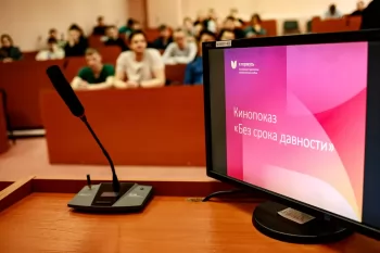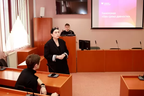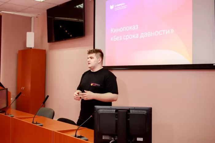 В рамках кинопоказа студентам продемонстрировали фильм «Без срока давности», подготовленный ко Дню единых действий в память о геноциде советского народа нацистами и их пособниками. Фильм подготовлен на основе хроник, в том числе трофейных, из Российского государственного архива кино- и фотодокументов и Госфильмофонда. В фильме приводятся фото- и видеоподтверждения издевательств нацистов над мирными советскими гражданами в оккупированных населённых пунктах.