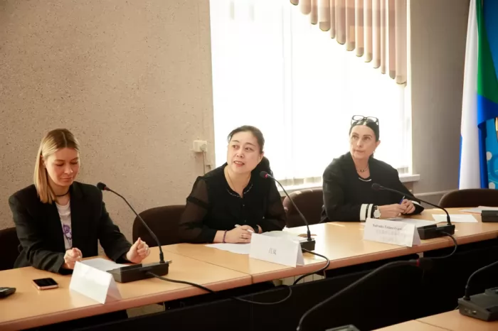 На деловой встрече присутствовали: ректор университета Э. А. Дмитриев, проректор по воспитательной работе и работе с молодёжью Т. Е. Наливайко, проректор по учебной работе Я. Ю. Григорьев; начальник управления международной деятельности Е. С. Шумайлова.