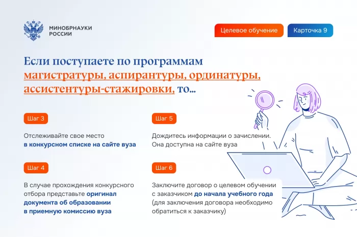 - Шаг 6. Заключите договор о целевом обучении с заказчиком до начала учебного года (для заключения договора необходимо обратиться к заказчику).