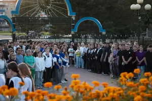 Затем на территории собора Казанской иконы Божией Матери состоялась молодёжная акция «Нет террору». На мероприятии присутствовали представители администрации города, русской православной церкви, общественных и молодёжных организаций, студенты, школьники, молодёжь города. В рамках акции для всех присутствующих батюшка провёл молитву в память о погибших. Далее студенты университета и активисты патриотического клуба КнАГУ «Я горжусь» совместно с другими участниками молодёжной акции сложили фразу «Нет террору!» из поминальных свечей в память о тех, кто погиб от рук террористов. Мероприятие нашло отклик в каждом из присутствующих студентов, молодые люди выразили готовность предупреждать любые проявления экстремизма и терроризма.