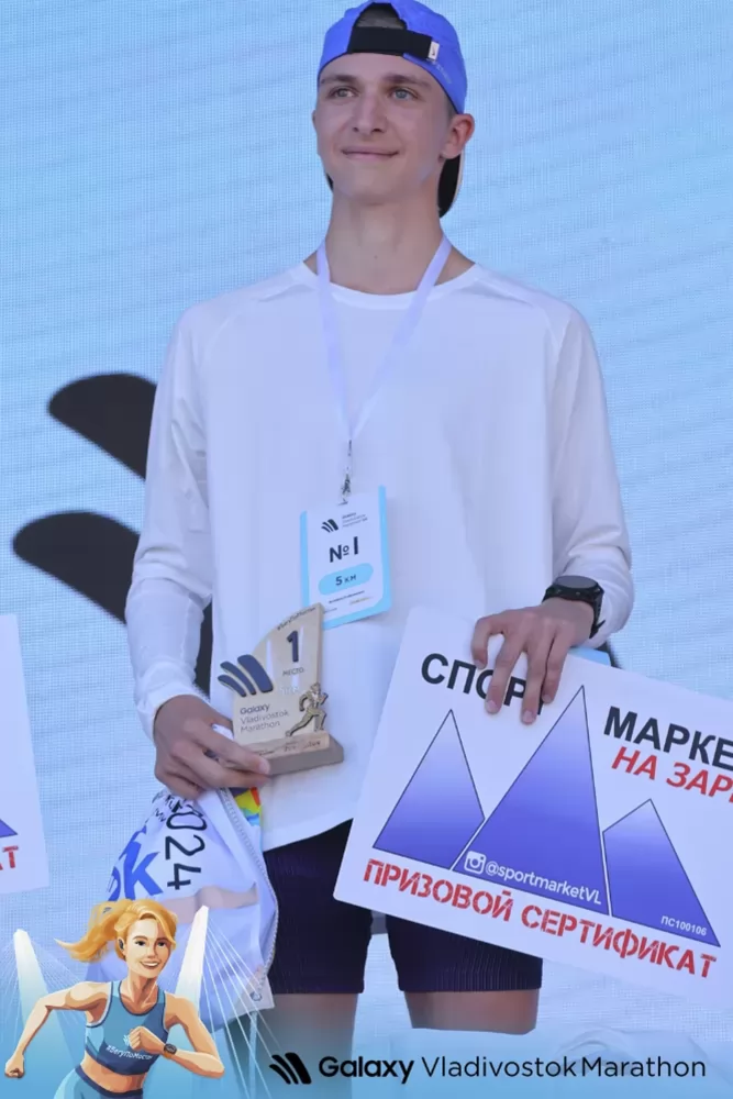 В субботу 28 сентября 2024 г. в г. Владивостоке состоялся VIII Galaxy Vladivostok Marathon. В соревновании приняли участие представители 7 стран и 183 городов России. От Комсомольского-на-Амуре государственного университета в марафоне участвовал студент второго курса социально-гуманитарного факультета Георгий Шаповалов, гр. 3ГУб-1.