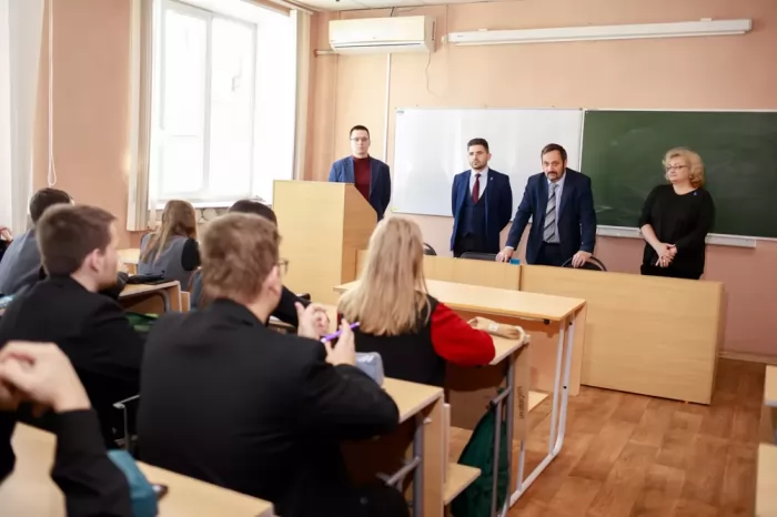 На первом занятии школьников нового инженерного (металлургического) класса поприветствовал декан факультета машиностроительных и химических технологий Павел Алексеевич Саблин: «Мы рады вас приветствовать в наших стенах. Вы, наверное, не просто так выбрали это направление, а именно техническое инженерное направление. В ближайшие 2 года мы с вами плодотворно поработаем над подготовкой к ЕГЭ и над вашей профессиональной ориентацией в жизни. Кто-то примет решение и дальше свою судьбу связать с инженерным делом, кто-то, может быть, выберет другую траекторию. Но в любом случае я надеюсь на плодотворное сотрудничество с вами и с руководством школы. Я бы хотел от вас получить максимум отдачи в плане обратной связи: мы в вас будем вкладываться интеллектуально, а вы должны отблагодарить нас своими усвоенными знаниями».