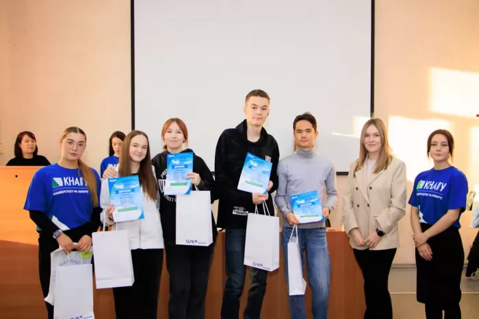 Завершилась каникулярная школа «АвиаБум» награждением победителей по итогам каникулярной школы. В торжественном мероприятии приняли участие руководство университета в лице о. и. проректора по учебной работе Яна Юрьевича Григорьева, а также представители ОАК: начальник отдела переводов управления делами Производственного центра в г. Комсомольске-на-Амуре филиала ПАО «Яковлев» – «Региональные самолёты» Ольга Александровна Данилова, руководитель проекта по взаимодействию с образовательными организациями Филиала ПАО «ОАК» «КнААЗ им. Ю. А. Гагарина» Сергей Валерьевич Макаренко.