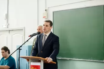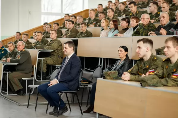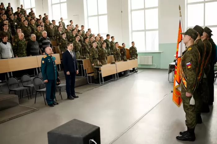 С поздравлением к собравшимся преподавателям, сотрудникам и курсантам Военного учебного центра обратился ректор университета Э. А. Дмитриев: «Уважаемые преподаватели Военного учебного центра, уважаемые курсанты, в этот праздничный день и довольно непростое время хотелось бы пожелать вам мирного неба над головой и, самое главное, успехов в учёбе. Вы – защитники нашей страны, соответственно, ваш успех очень важен для нашей Родины. С праздником!»