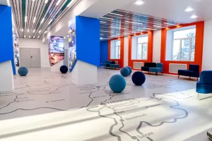 Процессом создания дизайн-проекта обновлённых пространств поделилась автор – студентка факультета кадастра и строительства Яна Шевченко: «Создание интерьера – интересный и трудоёмкий процесс работы. При создании правильного наполнения пространства интерьера необходимо выделить стиль, провести анализ и найти точки касания его философии, чтобы он понравился заказчику и людям, которые будут пользоваться спроектированным пространством. В основную идею дизайн-проекта легла история города Комсомольска-на-Амуре и его градообразующих предприятий, которая отображается в полотнах световых элементов. В цветовой карте интерьера используются фирменные цвета ОАК “Яковлев”. Основные элементы в интерьере – геометрические фигуры, напоминающие полёт и движение самолёта. Чёткость геометрии интерьера смягчается плавными формами мягкой мебели. Создавать интерьер для нашего университета было интересно, без небольших рабочих трудностей во время реализации не обошлось, но они незначительны на фоне общей выполненной работы. Очень приятно осознавать, что есть пространство, радующее студентов и преподавателей. Дизайн-проект создавался под руководством Дарьи Геннадьевны Сохацкой, я благодарна ей за поддержку и работу по реализации данного интерьера. Дарья Геннадьевна от начала и до конца работала в команде, мы вместе сталкивались с трудностями и совместно их решали!»