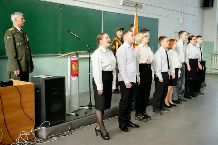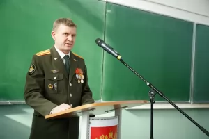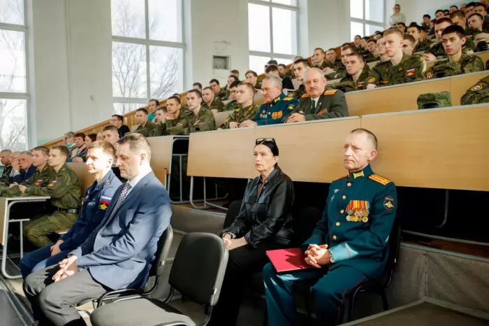 Начальник Военного учебного центра полковник запаса С. И. Карпов отметил, что в нашей стране много памятных дат и событий, но сегодня мы собрались в честь Дня защитника Отечества – великого и мужественного праздника. С древних времён защитники Отечества одерживали и продолжают одерживать важнейшие победы. 23 февраля – день воинской славы России. Сегодня мы не только поздравляем мужчин с праздником, но и вспоминаем героев СВО, чтим память воинов, отдавших жизни при выполнении боевых задач. Присутствующие почтили память погибших минутой молчания.