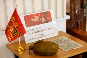 Война с фашизмом закончилась 80 лет назад, но эхо этой войны мы слышим до сих пор, оно доносится до нас с полей текущих сражений. В экспозицию включены предметы гуманитарной помощи, которые изготавливают и отправляют участникам СВО сотрудники библиотеки.