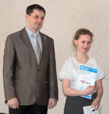 Ректор КнАГТУ Э.А. Дмитриев поблагодарил учеников Весенней школы "Технологии будущего" за участие в конкурсе и пригласил их стать студентами нашего университета. Олеся Лукьянова, Мария Дмитриева, Юлия Субочева были награждены дипломами и памятными призами с юбилейной символикой КнАГТУ.