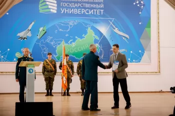 С поздравительной речью также выступил почётный гость, военнослужащий Комсомольского-на-Амуре гарнизона, участник СВО, майор Алексей Геннадьевич Э.: «Уважаемый ректор, товарищи офицеры, наши почётные гости, я рад находиться здесь, в стенах Комсомольского-на-Амуре государственного университета в торжественной обстановке, посвящённой 80-летию окончания Великой Отечественной войны. В преддверии праздника я хочу выразить огромную благодарность всему коллективу университета за их большой вклад в научную и общественную деятельность, за воспитание и обучение наших курсантов. Ваша неоценимая работа даёт право нашему университету называться одним из лучших университетов на Дальнем Востоке. Товарищи курсанты, я уверен, что благодаря полученным вами знаниям, навыкам, умениям вы сможете выполнить любые поставленные задачи в наших высокотехнологичных комплексах, военно-промышленных комплексах, современных перерабатывающих предприятиях. Желаю вам прежде всего стать профессионалами своего дела, принять все знания, которые вам вкладывают в университете, здоровья, активности, большого желания, любить свою страну, помнить о её традициях, а мы обещаем вам в этом сопутствовать».