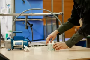 Ранее было предложено изготавливать изделия из пластика посредством 3D-печати, но пробная партия имела недостатки, связанные как с гипоаллергенностью, так и с безопасностью носимого устройства. Проведя исследования, Александр предложил изготавливать оснастку для изделия, а именно окклюдера, из силикона, а переднюю часть – из пластика, подобрал несколько типов жидкого силикона для изготовления сменного изделия в итоговый комплект. Из перечня отобранных материалов были выбраны те, что соответствуют требованиям по экологичности и гиппоаллергенности изделий такого типа.