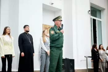 Также свои пожелания передали отец Александр, клирик Собора Казанской иконы Божией матери, и Сергей Иванович Карпов, начальник военного учебного центра КнАГУ, кандидат исторических наук, доцент, полковник запаса. Он рассказал о возможностях получения военной подготовки в университете, отметив, что программа подготовки офицеров и сержантов запаса – это путь к дисциплине, ответственности и служению Родине.
