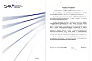 Важным событием мероприятия стало вручение коллективу КнАГУ благодарственного письма от генерального директора ПАО «ОАК» Вадима Александровича Бадеха за высокий уровень подготовки квалифицированных специалистов для авиастроительной отрасли, заслуги в научно-педагогической деятельности и многолетнее плодотворное сотрудничество. Также было передано официальное обращение от ПАО «ОАК» коллективу КнАГУ в честь 70-летия университета. В письме отмечается значительный путь вуза в интеграции инженерного образования и науки, его статус как одного из лидеров технического образования в стране, а также подчёркиваются тесные связи с ключевыми промышленными партнёрами — КнААЗ им. Ю. А. Гагарина, Производственный центр «Региональные самолёты» — и роль в подготовке высококвалифицированных специалистов для авиационной отрасли в областях самолётостроения, материаловедения, робототехники и других.