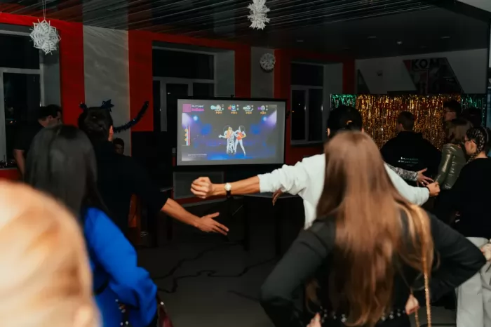 16 декабря холл актового зала наполнился праздничной атмосферой и запахом мандаринов – состоялась новогодняя дискотека «КнАГУ зажигает». В мероприятии приняли участие студенческий актив вуза и студенты всех факультетов и общежитий. В ходе программы участники делали фотографии на яркой фотозоне, пели знаменитые новогодние композиции, водили хоровод вокруг ёлки, встречали Дедушку Мороза и танцевали от души.