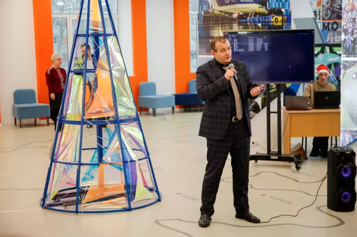Декан факультета машиностроительных и химических технологий Павел Алексеевич Саблин присоединился к поздравлениям: «Хотелось бы, чтобы ваш выбор в дальнейшем был связан с выбором вашего будущего выпускного экзамена и вашей профессии, специальности и вуза. Кружки – это развитие творчества, здесь вы приобретаете навыки, чтобы потом чувствовать уверенно в точных науках. Поздравляю вас с наступающим Новым годом, счастья, успехов вам!»