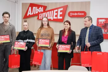 В торжественной обстановке студентам-стипендиатам вручили памятные подарки от «Альфа-банка». Ими стали: Данил Борзунов, Виктория Рубашова, Александра Ступенко, Алина Белогубец, Сабина Мамедова.