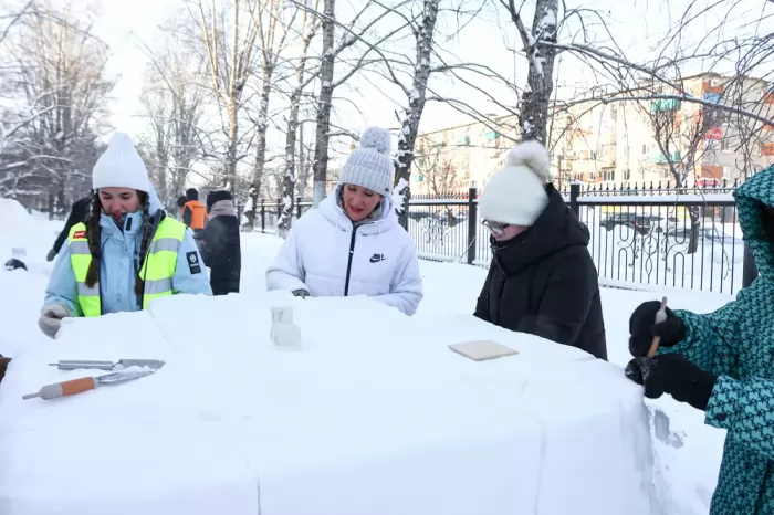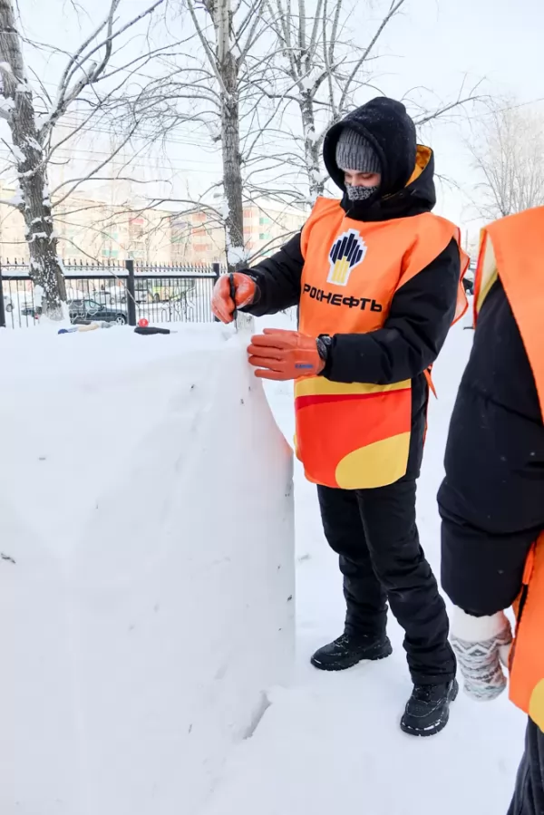 С самого утра в этот день на площадке царила оживлённая атмосфера. Звучали шутки, смех, команды дружно вооружались инструментами — лопатами, шпателями, тёрками — и приступали к работе: все без исключения погрузились в творческий процесс с энтузиазмом. Снег послушно принимал нужные формы, а морозный воздух лишь добавлял бодрости.