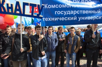 1 мая 2015 года студенты, преподаватели и сотрудники Комсомольского-на-Амуре государственного технического университета приняли участие в митинге, посвящённом празднику Весны и Труда.