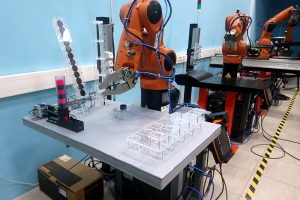 При обучении на данном комплексе слушатели приобретают навыки организации взаимосвязей нескольких совместно работающих роботов, учатся интегрировать технологическое оборудование сторонних производителей в робототехнический комплекс, управлять внешним оборудованием с помощью специализированных программных пакетов.