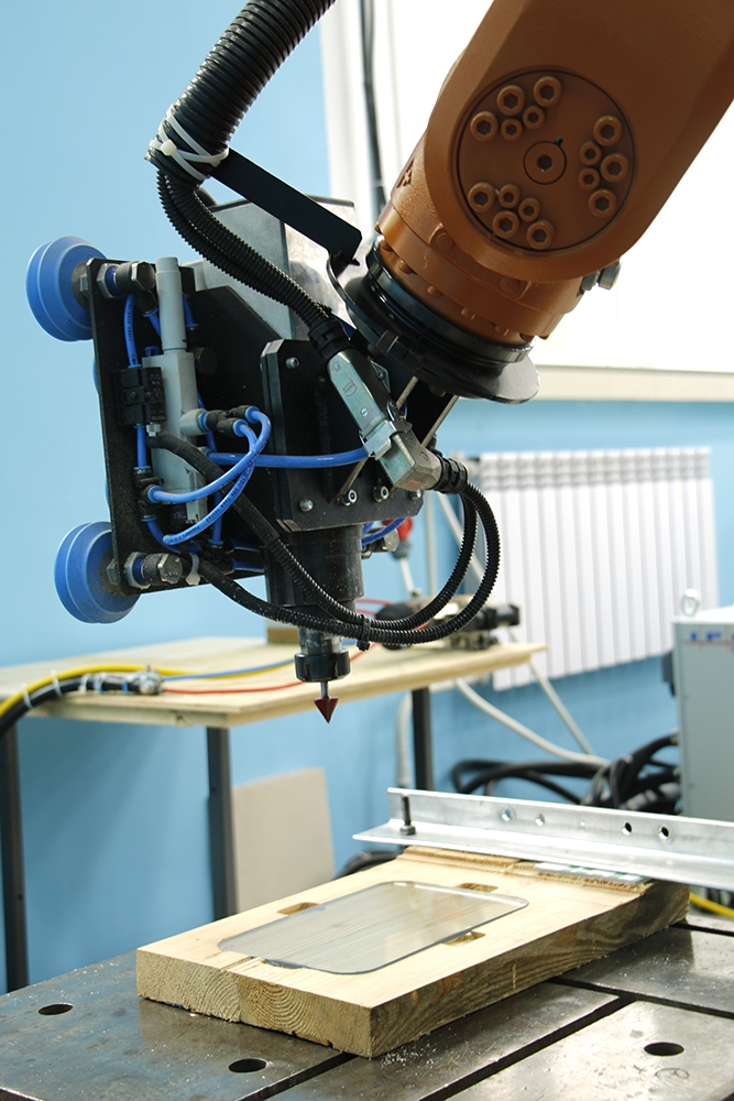 Робототехнический комплекс, предназначенный для выполнения операций механической обработки материалов (дерево, МДФ, различные виды пластика, алюминиевые сплавы) на основе робота KUKA KR60-3.