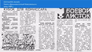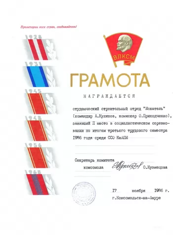Так например, по итогам социалистического соревнования трудового семестра 1983 года в краевом студенческом отряде, бюро крайкома ВЛКСМ постановило: