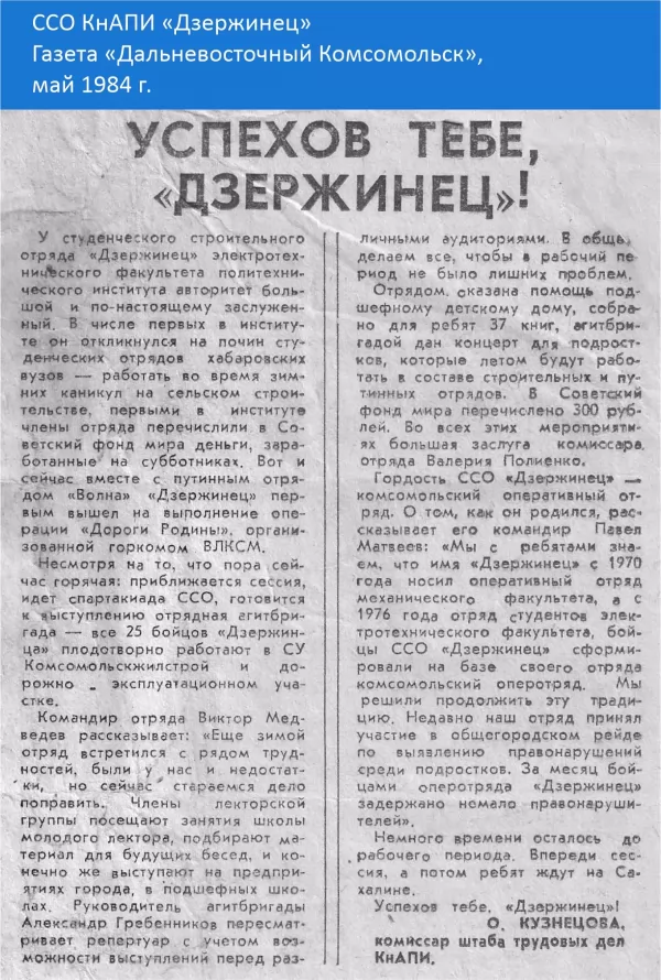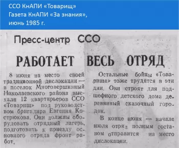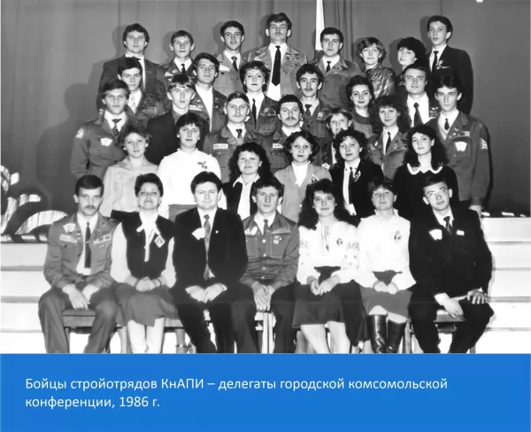 Стройотрядовское движение в КнАПИ носило поистине массовый характер, так например в 1985 году на базе нашего института было сформировано 17 стройотрядов и каждый насчитывал не один десяток бойцов.