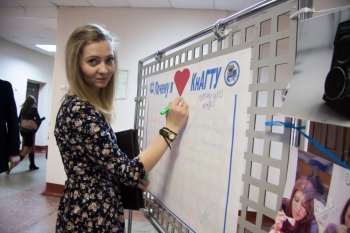 Акция «Почему я люблю КнАГТУ» была организована студенческим комитетом по содействию повышению качества образования КнАГТУ совместно с отделом менеджмента качества. Цель проведения акции - дать возможность каждому желающему студенту или сотруднику университета рассказать всем, почему он любит КнАГТУ. Активное участие в акции приняли не только студенты, преподаватели и сотрудники вуза, представители администрации университета, но и первокурсники, а также гости вуза – школьники Комсомольска-на-Амуре. Акцию посетили более 100 человек. Отвечая на вопрос «Почему я люблю КнАГТУ?», участники акции отмечали знания и качество образования («Дает мне новые знания», «За качественное образование», «Хорошо преподают», «Дают отличное образование» и т.д.), качества вуза («Потому, что КнАГТУ как второй дом», «Учиться весело и интересно», «Красивая эмблема КнАГТУ», «Лучший университет», «Стильно, модно, молодежно», «Инновационный вуз», «За его разносторонность» и т.д.), коллектив университета («Здесь самые отзывчивые люди», «За дружный коллектив», «Здесь работают интересные люди» и т.д.).