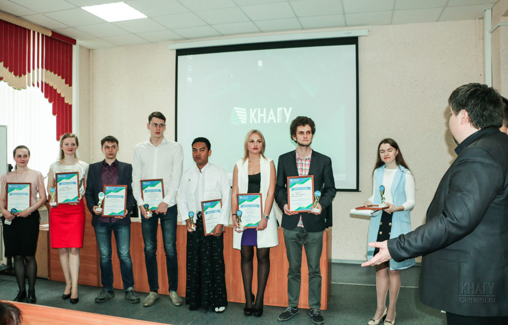 Впервые в конкурсе принял участие иностранный студент Мин Ко Ко из Республики Союз Мьянма (магистр ФЭТМТ). В настоящее время он работает над диссертацией на тему «Исследование особенностей проектирования и анализа судна для перевозки жидких грузов водоизмещением до 10000 тонн». На вопрос жюри «Почему выбрал обучение в КнАГУ?» Мин Ко Ко ответил, что хочет быть инженером-кораблестроителем, и правительство Мьянмы определило именно наш университет, т.к. КнАГУ является ведущим вузом в обучении специальности «Кораблестроение». Талантливая студентка СГФ Ирина Андросова уже давно проводит социологические опросы для различных заказчиков, пишет научные статьи. По завершении обучения хотела бы работать социологом на предприятии.