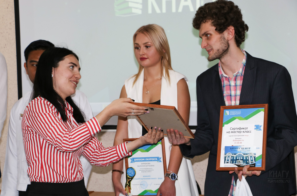 В Комсомольском-на-Амуре государственном университете прошёл ставший уже традиционным конкурс «Лучший выпускник КнАГУ – 2018», направленный на выявление и поддержку наиболее талантливых и успешных выпускников вуза, проявивших себя в учебной, научно-исследовательской, общественной, творческой и спортивной деятельности.