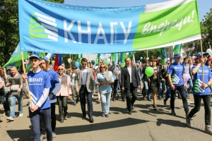 Ярко украшенная колонна нашего университета в составе масштабной общегородской колонны прошла по пр. Мира до набережной р. Амур, где по традиции состоялись торжественный митинг, посвящённый Дню города, церемония возложения цветов к памятнику Первостроителям. Особенностью университетской колонны стало присутствие в ней иностранных студентов, которые успешно учатся в КнАГУ, живут и любят наш город.