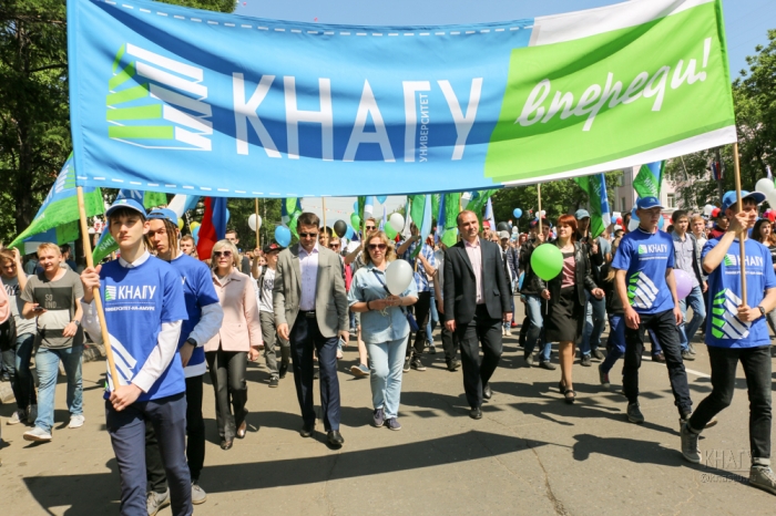 11 июня 2018 г. студенты, преподаватели и сотрудники Комсомольского-на-Амуре государственного университета приняли участие в праздничном шествии «Славим тебя, Комсомольск!», посвящённом 86-й годовщине со дня образования Комсомольска-на-Амуре.