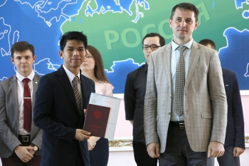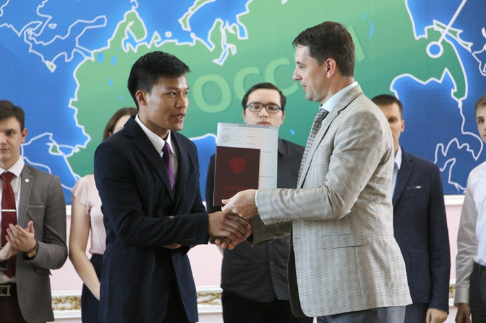 Они поздравили студентов с получением красных дипломов о полном высшем образовании, пожелали, чтобы все их начинания обязательно воплотились в жизнь и отметили, что КнАГУ является одним их передовых университетов Дальнего Востока, а его выпускники занимают лидирующие позиции не только в промышленных предприятиях, но и в других отраслях и учреждениях города.