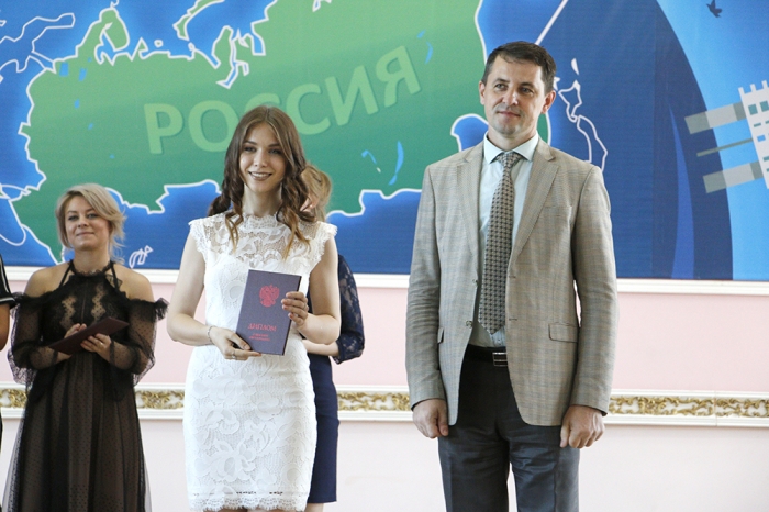 4 июля 2018 г. в Комсомольском-на-Амуре государственном университете прошло главное для наших студентов общеуниверситетское мероприятие учебного года – торжественное вручение дипломов с отличием. В этот праздничный день состоялось чествование лучших выпускников нашего вуза – одного из крупных научных и инновационных центров, обеспечивающего промышленность Дальнего Востока высококвалифицированными кадрами, перспективными научными и инновационными разработками, осуществляющего подготовку по образовательным программам бакалавров, магистров и дипломированных специалистов.