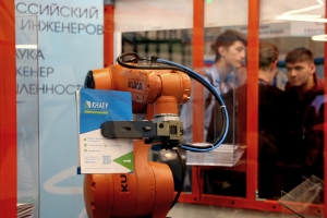 Экспозиция КнАГУ была представлена промышленным роботом KUKA, одним из роботов Научно-образовательного центра «Промышленная робототехника и передовые промышленные технологии» (НОЦ «ПРиППТ») КнАГУ, запрограммированным на раздачу буклетов вуза, в которых отражена информация об основных научных и инновационных центрах университета. В своей речи губернатор Хабаровского края В.И. Шпорт и генеральный директор ООО «Кука Роботикс Рус» Д.Е. Капишников отметили высокую важность открытия НОЦ «ПРиППТ» в городе не только для университета в частности, но и для развития региона в целом.