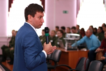 Кроме грантовой поддержки, Е.А. Демин рассказал о прошедшей Всероссийской форумной кампании «Росмолодёжи» 2018 г. Особо отметил активное участие студентов КнАГУ в качестве участников и волонтёров на Всероссийском молодёжном образовательном форуме «Амур», который проходил с 5 по 27 июня 2018 г.