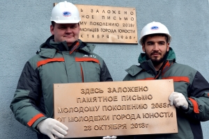 Затем был зачитан текст послания сегодняшней молодёжи своим потомкам 2068 года с перечислением достижений промышленных предприятий города и пожеланий будущему поколению. Текст был составлен сотрудниками Дома молодежи из обращений, присланных молодежью города.