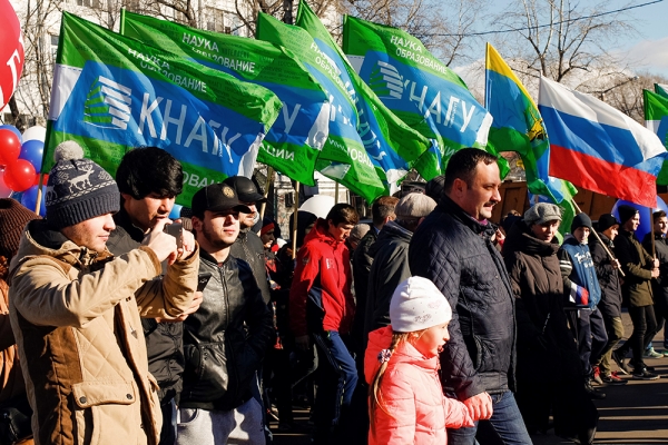 Многонациональная колонна КнАГУ приняла участие в народном шествии