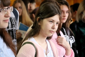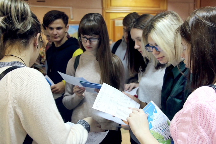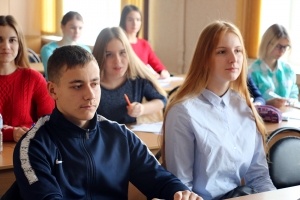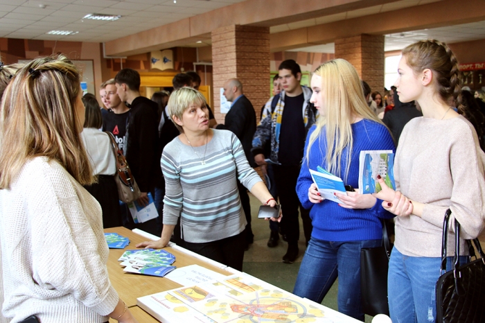 Далее начальник отдела профориентации и рекламы С.В. Макаренко подробно остановился на направлениях подготовки, реализуемых в КнАГУ. Было отмечено, что первокурсники, поступившие в университете на очную форму обучения с высокими конкурсными баллами, получают повышенную стипендию, размер которой варьируется от 5000 до 15000 рублей в месяц.
