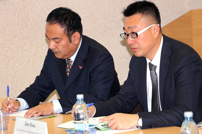 На встрече присутствовали: первый проректор И.В. Макурин, проректор по учебно-воспитательной работе Т.Е. Наливайко, декан электротехнического факультета А.С. Гудим, начальник учебно-методического управления Е.Е. Поздеева, заведующая кафедрой истории и архивоведения Ж.В. Петрунина; делегация в составе Генерального консула КНР в г. Хабаровске Цуй Гоцзе, заместитель Генерального консула КНР в г. Хабаровске Лян Нань, консул по науке и образованию Генерального консульства КНР в г. Хабаровске Цао Синь, заместитель консула Генерального консульства КНР Сюй Синлинь, консул-атташе Генерального консульства КНР Ван Бинхуэй, консул-атташе Генерального консульства КНР Цюй Мэнян.