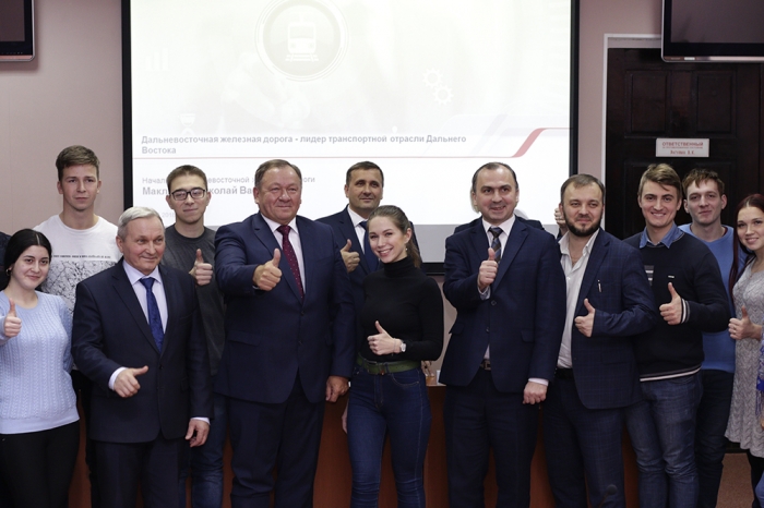 Завершилось мероприятие встречей начальника железной дороги Н.В. Маклыгина со студентами Комсомольского-на-Амуре государственного университета на тему «Дальневосточная железная дорога – лидер транспортной отрасли Дальнего Востока».