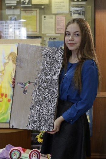 Некоторые работы демонстрировались в холле актового зала во время проведения Международного фестиваля «Уроки дружбы».