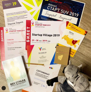 Владислав как победитель регионального этапа Open Innovations Startup Tour в Якутске получил приглашения на главный робототехнический Форум Восточной Европы Skolkovo Robotics и самую крупную в России и странах СНГ ежегодную Международную стартап-конференцию Startup Village с правом на представление своего проекта в финале, в котором лучшие проекты соревнуются за получение грантов в размере от 1 до 5 млн рублей. Также молодой инноватор получил специальные призы от ассоциации IPChain – сертификаты на членство в профессиональном цифровом клубе n’RIS с правом депонирования объекта интеллектуальной собственности.