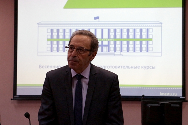 25 марта в конференц-зале КнАГУ состоялась встреча представителей вуза с иногородними школьниками. С информацией об особенностях приёмной кампании 2019 года выступил ответственный секретарь приёмной комиссии университета Г. М. Гринфельд. Было отмечено, что подать документы в приёмную комиссию университета можно тремя способами: обратиться лично в приёмную комиссию, отправить комплект документов почтовым отправлением или зарегистрироваться на портале абитуриента КнАГУ (эл. адрес: http://abit.knastu.ru).