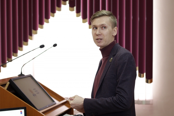 Затем перед студенческим активом выступил член Молодёжной общественной палаты при Комсомольской-на-Амуре городской думе, студент ФКТ Роман Кузьменко. Он рассказал присутствующим о целях, задачах и направлениях деятельности Молодёжной общественной палаты, о мероприятиях, которые она реализует в течение 2018-2019 гг. Роман рассказал, что в настоящее время Молодёжная общественная палата состоит из 17 человек и только один из них является студентом КнАГУ. Роман призвал членов объединённого совета обучающихся сообщить на своих факультетах/институте о том, что Молодёжная общественная палата при городской думе рада принять в свои ряды молодых, инициативных людей, желающих внести свой вклад в развитие города, края, заниматься общественно-полезными и социально-значимыми делами. Для этого необходимо отправить на сайт городской думы необходимый пакет документов. Подробную информацию можно получить по тел. + 7 (962) 298-94-93 (Роман Кузьменко).