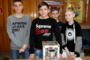 1-е место – Владислав Надярный, Илья Солтус, Алёна Уварова с проектом «Робот-пылесос» (МБОУ СОШ п. Октябрьский);