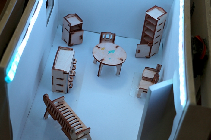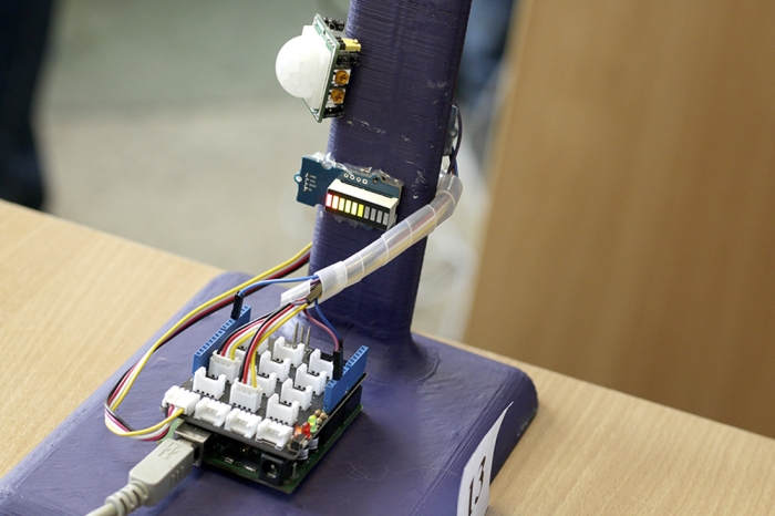 Команда «КПД» из МОУ СОШ № 35 г. Комсомольска-на-Амуре в составе Дмитрия Корнукова, Николая Лустина и Анастасии Хохловой представили проект «Умный офис»: «В нашем проекте представлен контроль климата и освещения, производится выведение на дисплей значения температуры и уровня влажности окружающего воздуха. При отклонении показателей температуры и влажности воздуха от заданных параметров автоматически происходит проветривание помещения. Можно управлять системой контроля климата удалённо с помощью телефона», – рассказала Анастасия Хохлова.